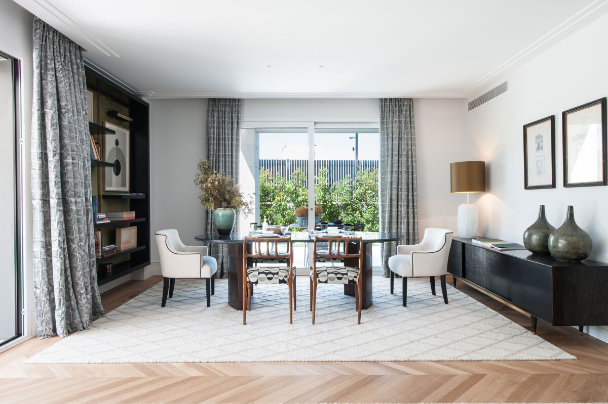 Pisos de 3 dormitorios más el de servicio, con superficies cerradas de 185 a 215 m2 y salón comedor de 40 a 60 m2. Bajos con jardines de 250 a 300 m2, primeros y áticos con amplias terrazas.